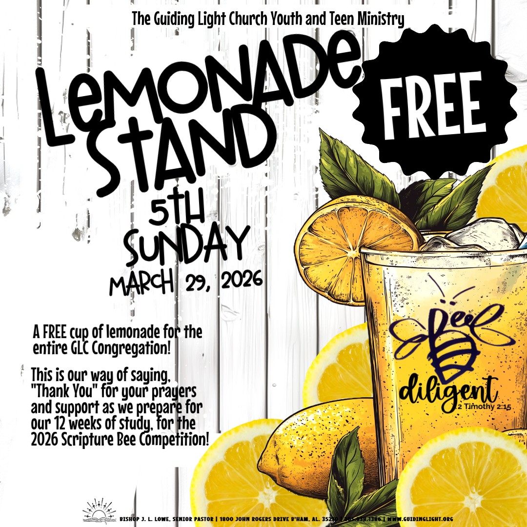 On March 29, 2026, the GLC Youth and Teen Ministry will be hosting a lemonade stand for the entire GLC Congregation! Please stop by the GLC Cafe area for your FREE cup of Gourmet Lemonade. This is our way of saying “Thank You” for your prayers and support as we prepare for our 12 weeks of study for the 2026 Scripture Bee Competition!